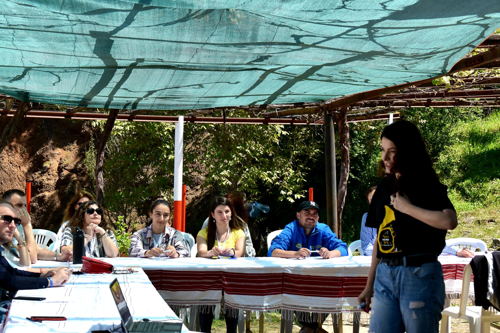Shtegu për te bujtina e bardhë është rrugë rurale e mirëfilltë që do të joshte makinat 4×4 apo rally, dashamirësit e guximshëm të aventurës. Aty u mblodhëm me një grup që kanë në zemër nismën dhe biznesin, nga Dibra, Mirdita apo Mallakastra, për të ndarë guximin për ide të reja, dashurinë për biznesin, dëshirën për të ndërtuar diçka kur një pjesë tjetër përpiqet ta anashkalojë dhe ta harrojë. Familjarët kishin përgatitur një gosti të tërë me ushqime të zonës dhe na servirën buzagaz gjithçka të mirë.